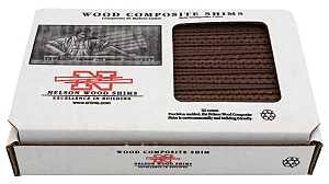 Designed for easy snapping and faster installations. NWS Composite shims are waterproof, resist splitting, impervious to insects and offer much greater load bearing capacity than wood. Composite Shims are 8 in long and tapered from 5/16 in down to 1/32 in. There are 32 shims per carton, 15 cartons per box and 50 boxes per pallet. Shims fit easily into a tool belt.