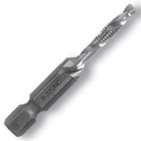 Drill/tap high-speed steel bit, split point with web thinning. High-quality hex shank to ensure strong connection to drill chuck. Complete hole drilling, tapping and deburring or countersinking in one operation with power drill. Designed to tap up to 10 ga metal. Back taper or deburr or countersink beyond tap to prevent thread damage from over-drilling.