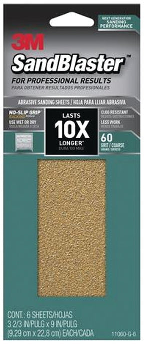 3M SandBlaster Series 11060-G-6 Sandpaper, 9 in L, 3-2/3 in W, 60 Grit, Coarse, Synthetic Mineral Abrasive