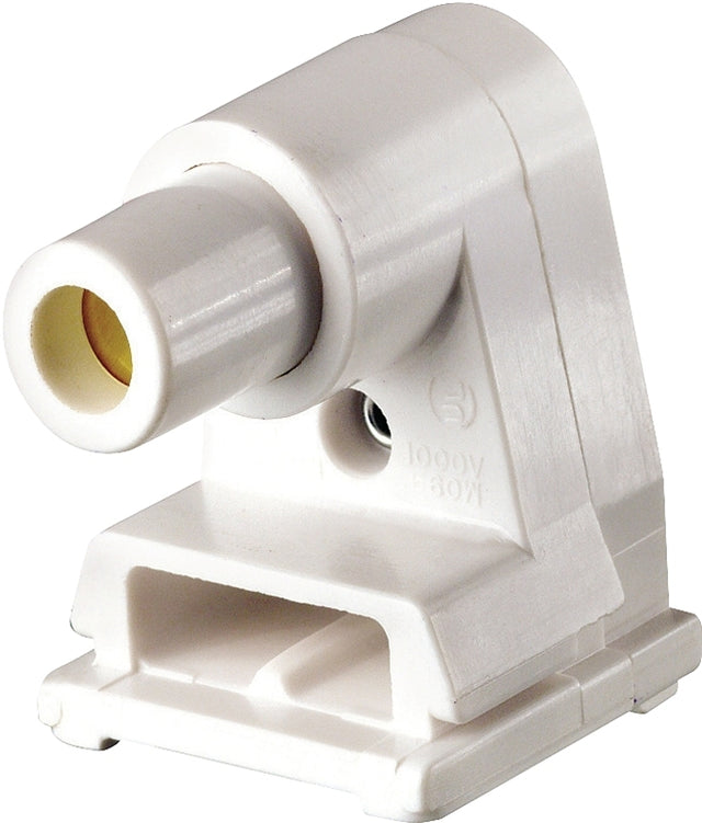 Leviton Lamp Holder, Pedestal, Lamp Type: Fluorescent, Base Type: Slimline, 1000 V, Wattage Rating: 660 W, Wire Size: 18 AWG, Housing Material: Thermoplastic, Lock-On, Slide-On Mounting, White, Dimensions: 1.84 in L x 1.31 in W