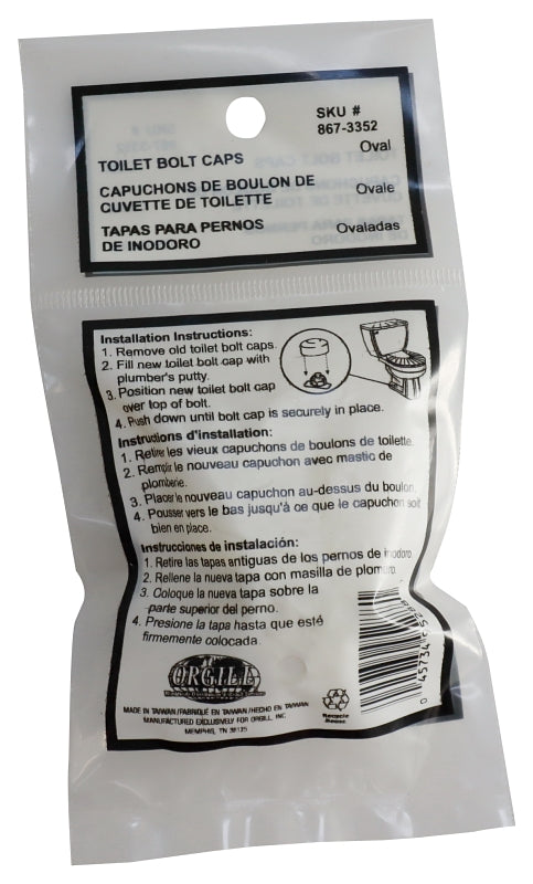 These universal round fit push-on toilet bolt caps add a decorative finish to your toilet. They are easy to install by simply attaching them to a commercial or residential toilet where a classic look is desired. Includes 2 toilet bolt caps with adapters.