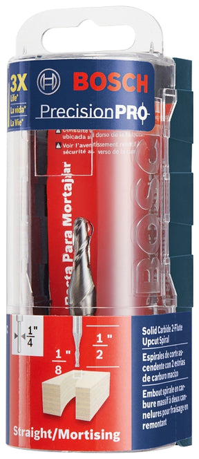 Bosch 85908MC Router Bit, 1/8 in Dia Cutter, 1/2 in L Cutting, 2 in OAL, 1/4 in Dia Shank, 2-Cutter