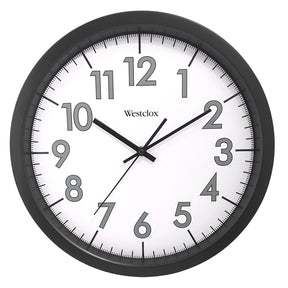 Westclox 32067 Clock, 14 in Dia, Round, Black Frame, Plastic Clock Face, Analog, Glass Lens