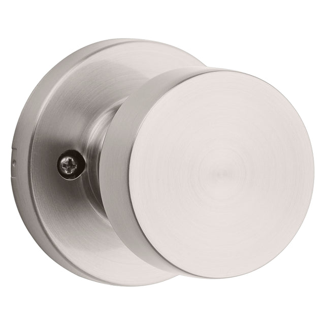 Kwikset Signature Door Pull, Pismo, Round, Satin Nickel, Required Door Thickness: 1-3/8 to 1-3/4 in, Backset Size: 2-3/8 to 2-3/4 in, Knob Handle, Zinc, Silver