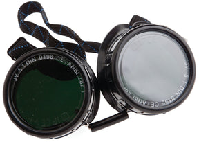 Features two separate 50 mm round #5 shaded hardened eye-pieces. Equipped with cover lenses. Folds up to pocket size for storage and carrying. Meets ANSI Z87.1 safety standards. "Forney" 56900 (shaded) and 56901 (clear) replacement 50 mm eye-pieces are available separately. Provides 99.9% UV protection. Designed for gas welding only.