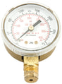 2 in (50.8 mm) face with 1/4 in (6.35 mm) national pipe thread (NPT). Features threads that are common to "Forney", "Victor", "Harris", "Smith" and "Marquette" compatible regulators. Solid brass threads and brass casings provide extra long life.