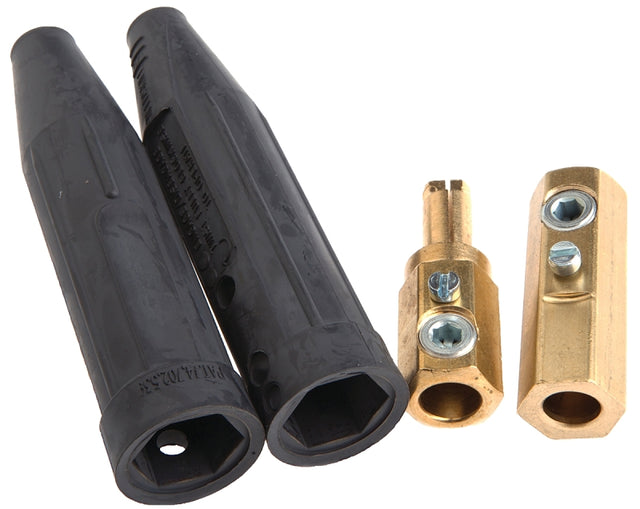 Quick connectors for #1 through #4 welding cable extensions. Heat and oil-resistant covers.