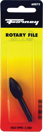 Forney 60075 Football Shaped Rotary File, 1/2 in Dia Cutting, 1/4 in Dia Shank, Steel