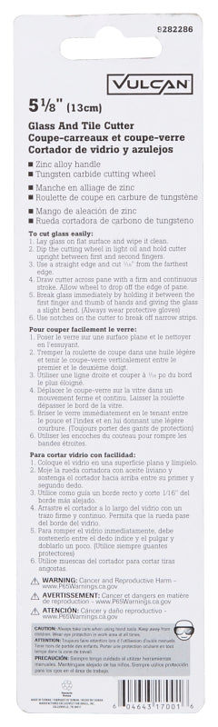 Vulcan 17001 Tile and Glass Cutter, Zinc Body, 5.125 in L
