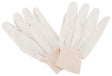 Clute-cut work gloves feature straight thumb, knit wrist cuff, 70% cotton and 30% polyester fabric.