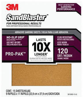 3M SandBlaster Series 30120ES-15-G Sandpaper, 11 in L, 9 in W, 120 Grit, Medium, Aluminum Oxide Abrasive, 15/PK