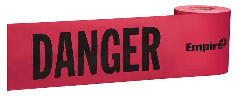 Empire Barricade Tape, Standard, 200 ft L, 3 in W, 2 mil Thick, Plastic Backing, Red