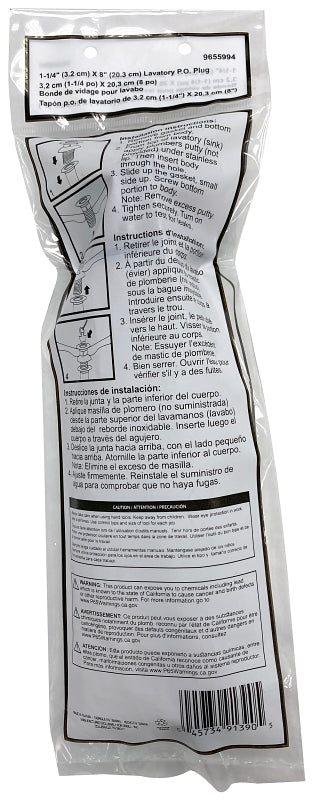 ProSource TW0920 Lavatory Plug, Pull-Out, Chrome