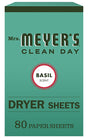 Mrs. Meyer's Clean Day 014448 Dryer Sheet, Basil