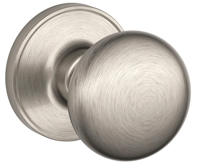 Schlage J Series J10 STR 619 Passage Knob, Metal, Satin Nickel, 2-3/8, 2-3/4 in Backset, 1-3/8 to 1-3/4 in Thick Door