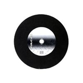 The Vulcan cut-off wheel material is aluminum oxide. The arbor size is 1 in, 12 in Dia and the thickness is 3/32 in. Suitable to use on metal.